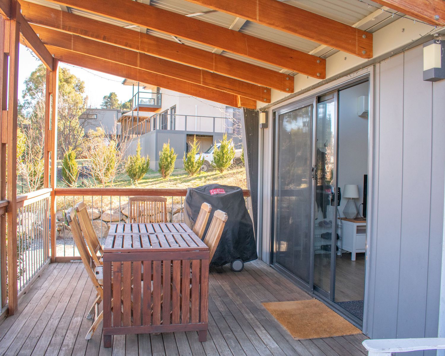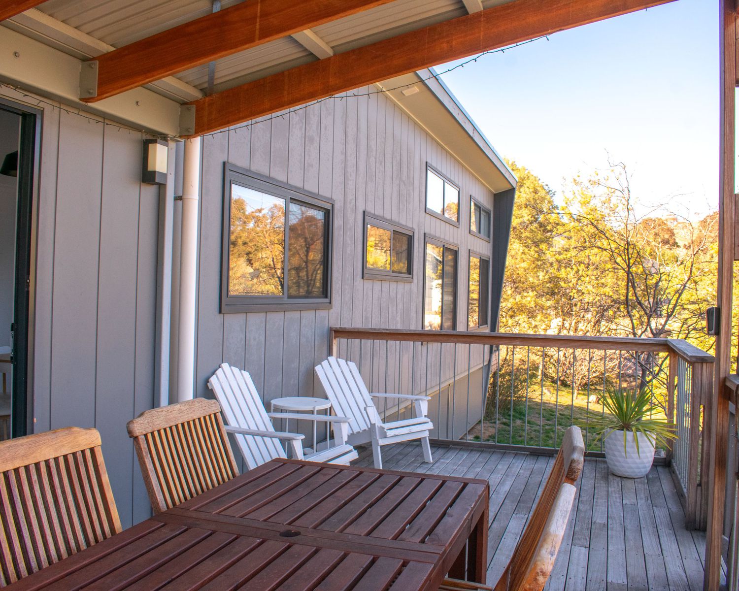 On a large residential lot at East Jindabyne, this duplex villa offers stunning views over Lake Jindabyne and the Snowy Mountains.